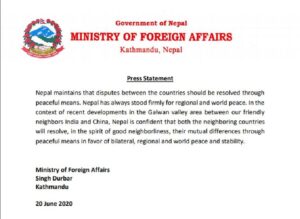 Nepal’s statement comes five days after 20 Indian soldiers were killed in a violent clash with Chinese troops in Galwan Valley along the India-China border on June 15. India has accused China of killing its troops in its territory while China has denied the allegations.