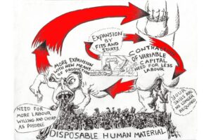 In other words, there’s nothing inevitable about socialism. With each passing day we see the threat of capitalist climate change that threatens to bring “the common ruin of the contending classes.” But revolutionary socialists believe that through the overthrow of the bourgeoisie by the proletariat, and reorganizing society towards socialism, that we may be able to live under a system that prioritizes human needs and ecological well-being rather than capitalist profiteering. The destruction of the current world and the hope for another are not opposite realites but are dialectically linked. As Marx describes class struggle and capitalism’s contradictions in Capital: